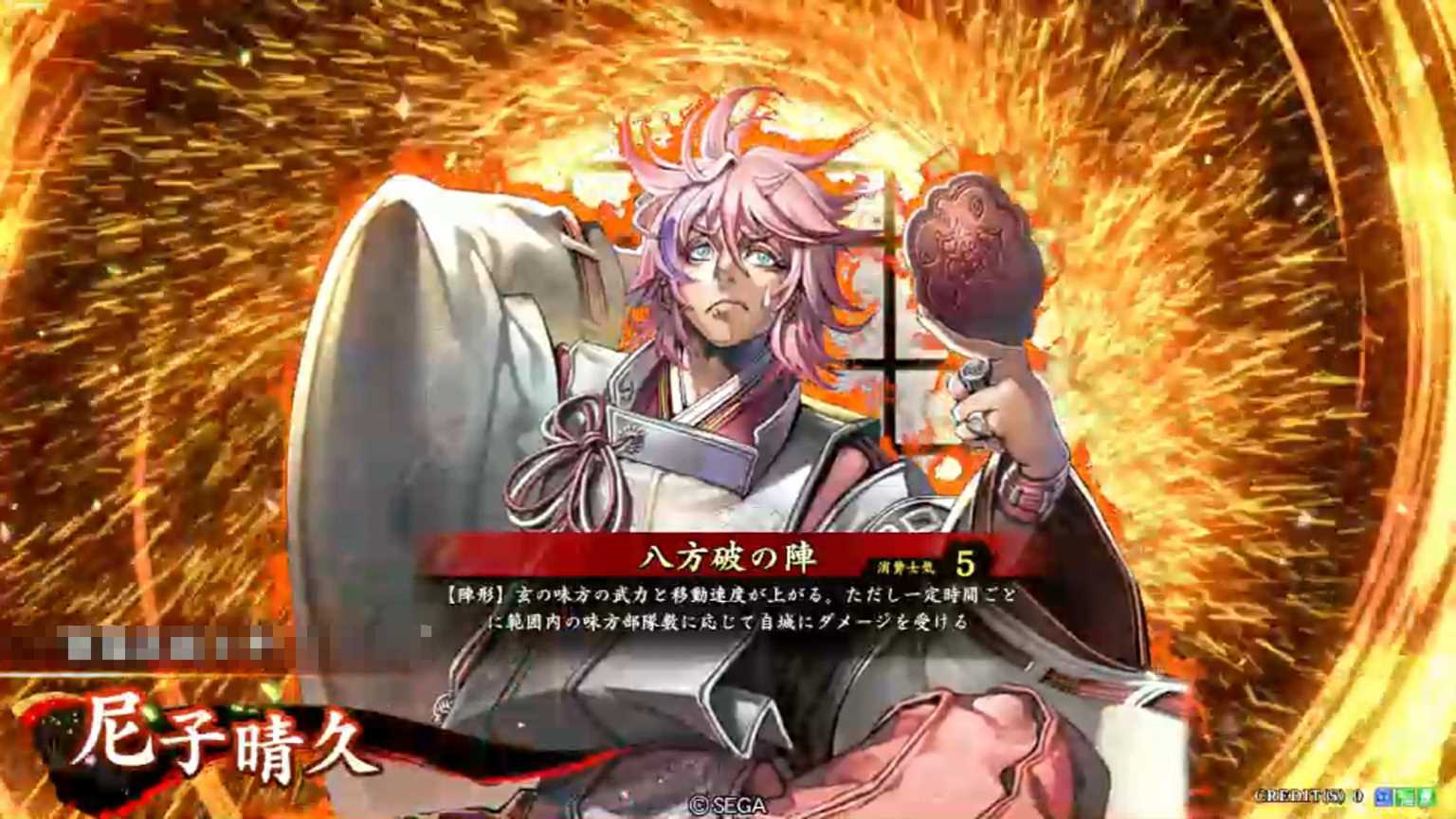 | 【陣形】(発動すると陣形が出現し、その中にいる間のみ効果が発生する。陣形は同時に複数発動できない) 玄の味方の武力と移動速度が上がる。ただし一定時間ごとに範囲内の味方部隊数に応じて自城にダメージを受ける | ||||