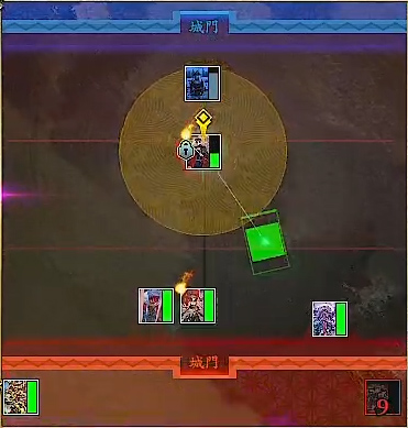 | 【琥煌:最大消費3】(計略発動時に消費した琥煌ゲージに応じて効果が変わる。発動後に琥煌ゲージが増加する) 自身を除く範囲内の味方一人が撤退し、自身の武力が上がる。 ただし範囲内に味方がいない場合、効果が下がる | ||||