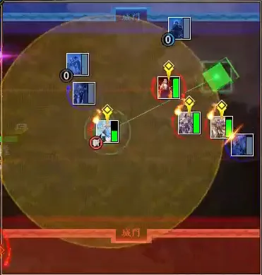 | 紫の味方の武力が上がり、斬撃時に自身と対象の最も近い味方を繋ぐ範囲が自身の斬撃の範囲に変化する。この計略は一定回数自身の斬撃を敵に当てた時のみ使用でき、戦闘中一度しか使用できない | ||||