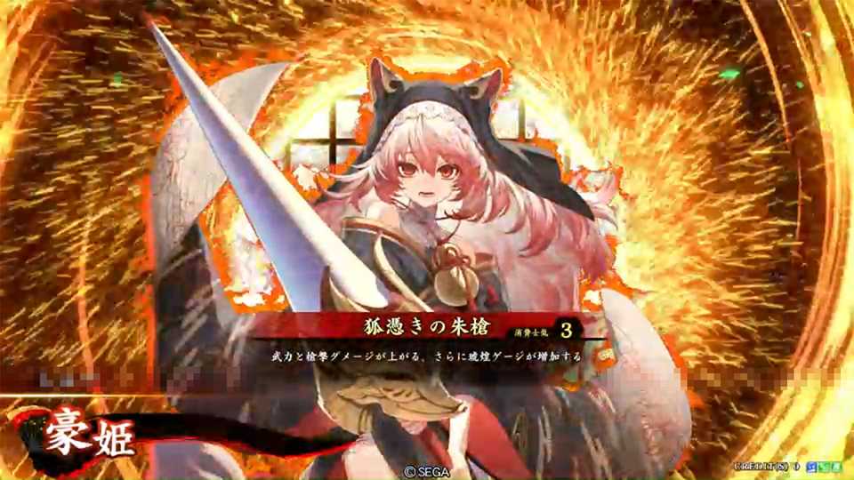 | 武力と槍撃ダメージが上がる。さらに琥煌ゲージが増加する | ||||