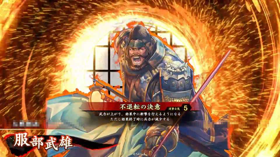 | 武力が上がり、効果中に斬撃を行えるようになる。ただし効果終了時に兵力が減少する | ||||