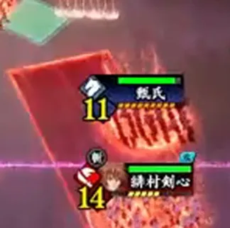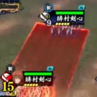 | 武力と移動速度と斬撃ダメージが上がり、斬撃が発生するまでの時間を短縮し、斬撃を当てた敵の移動速度を一定時間下げる。さらに斬撃の範囲が変化し、向いている方向に斬撃を行うようになる | ||||