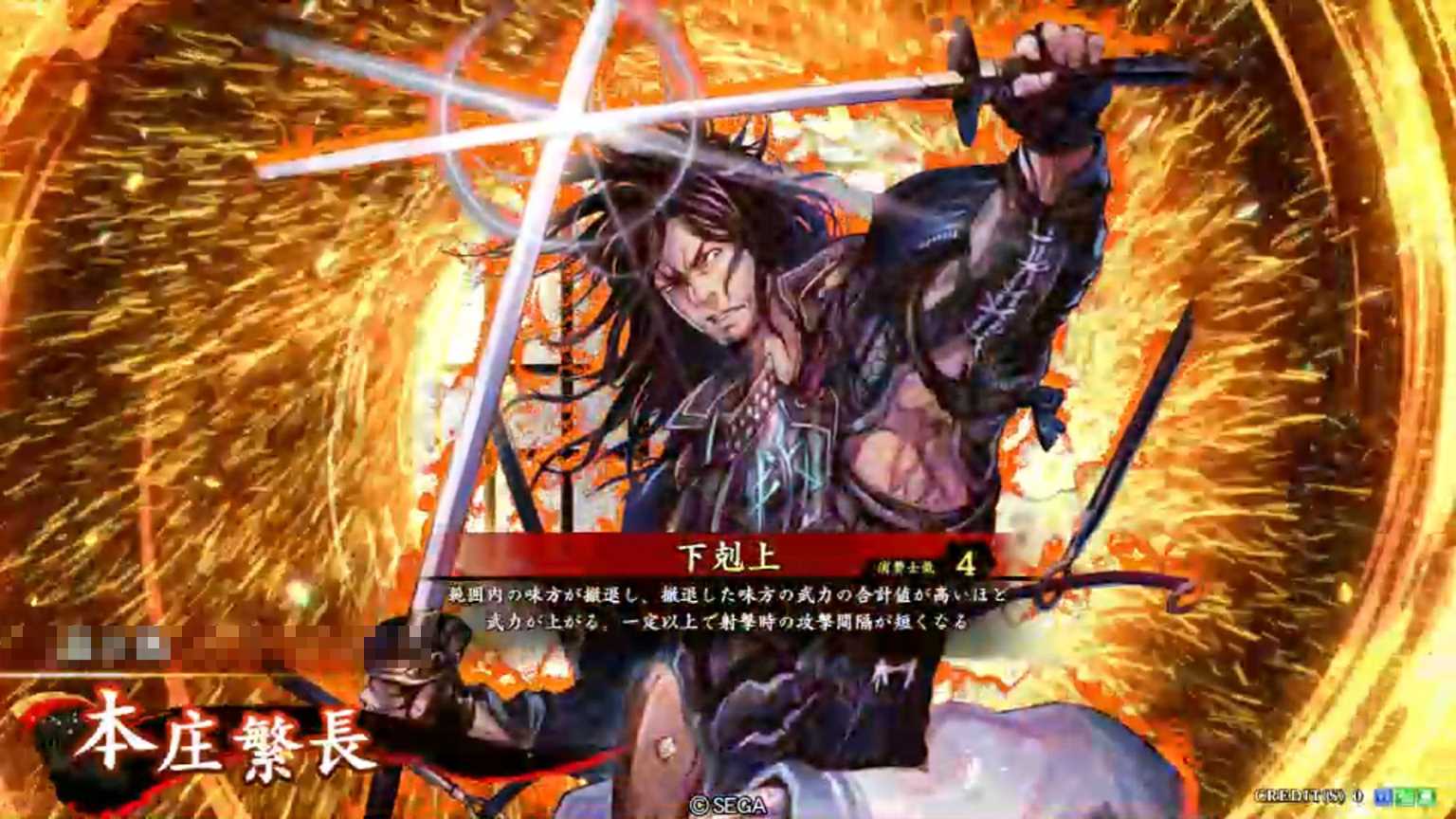 | 武力が上がる。ただし自身を除く範囲内の味方が撤退する。この効果は撤退した味方の武力の合計値が高いほど大きい。一定以上武力が上がると、さらに射撃時の攻撃間隔が短くなる | ||||