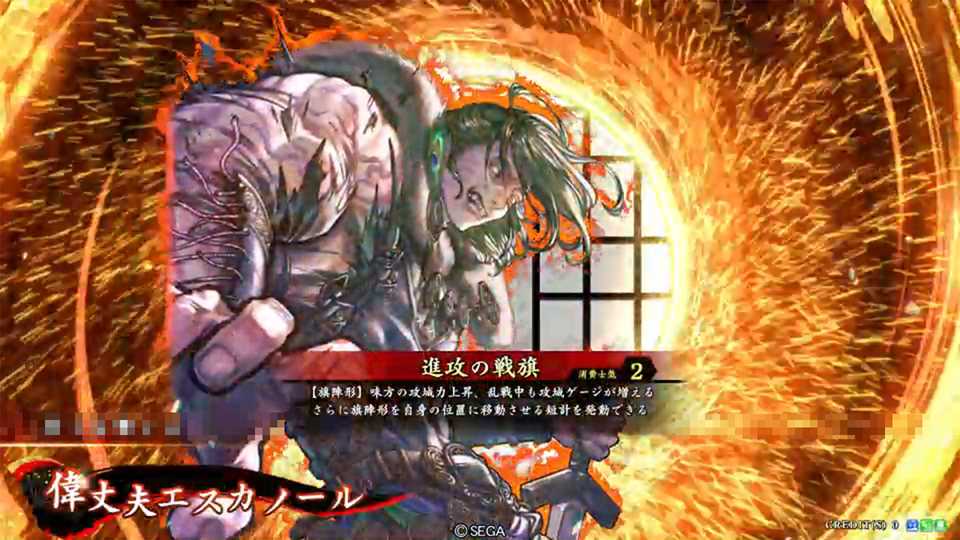 | 【旗陣形】味方の攻城力が上がり、乱戦中も攻城ゲージが増えるようになる旗陣形を設置する。さらに以下の短計を発動できる 短計・再設置【0.5】:一定時間後に自身の発動した旗陣形を自身の位置に移動させる | ||||