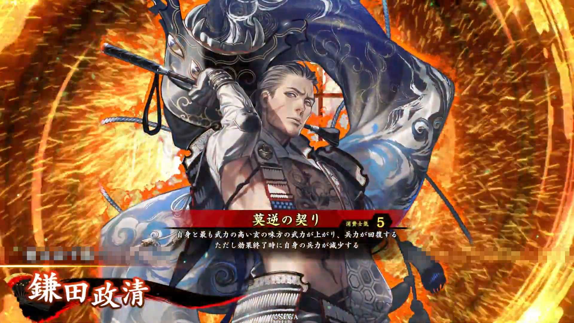 | 自身と、自身を除く最も武力の高い玄の味方の武力が上がり、兵力が回復する。ただし効果終了時に自身の兵力が減少する | ||||
