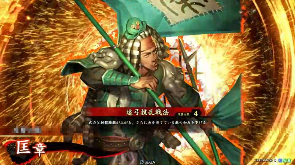 | 武力と射程距離が上がる。さらに矢を当てている敵の知力を下げる | ||||