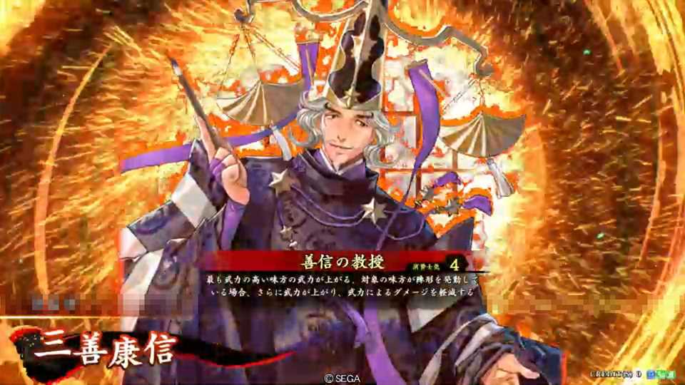 | 最も武力の高い味方の武力が上がる。対象の味方が陣形を発動している場合、さらに武力が上がり、武力によるダメージを軽減する | ||||