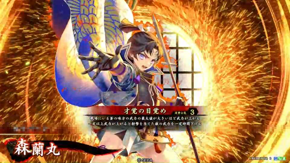 | 戦場にいる蒼の味方の武力の最大値が大きいほど武力が上がる。一定以上武力が上がると、さらに射撃を当てた敵の武力を一定時間下げる | ||||