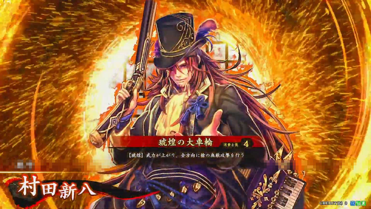 | 【琥煌:最大消費3】(計略発動時に消費した琥煌ゲージに応じて効果が変わる。発動後に琥煌ゲージが増加する) 武力が上がり、全方向に槍の無敵攻撃を行う 3消費:さらに槍の無敵攻撃のダメージが上がる | ||||