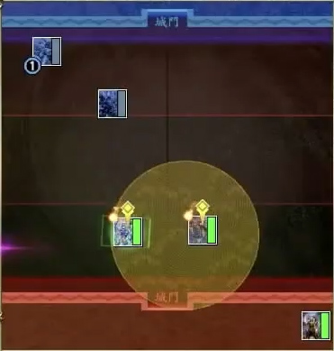 | 自身の武力と移動速度が上がり、武力によるダメージを軽減する。さらに自身を除く最も武力の高い味方の武力と移動速度が上がり、自身より武将コストが低い場合、さらに武力が上がる | ||||