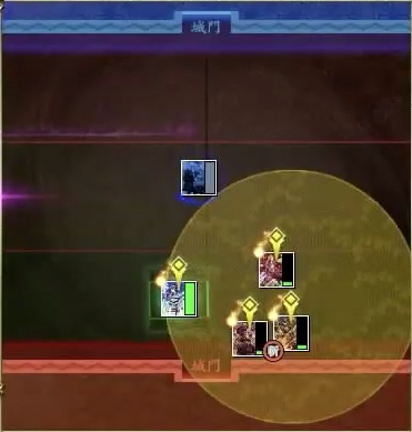 | 自身を除く味方の兵力が回復し、一瞬で城に戻す。対象の味方部隊数が多いほど自身の武力が上がり、一定以上武力が上がると、さらに移動速度と突撃ダメージが上がる | ||||