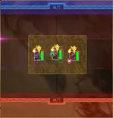 | 【陣形】(発動すると陣形が出現し、その中にいる間のみ効果が発生する。陣形は同時に複数発動できない) 玄の味方の武力が上がる。ただし移動速度が下がり、効果終了時に自身と範囲内の玄の味方が撤退する | ||||