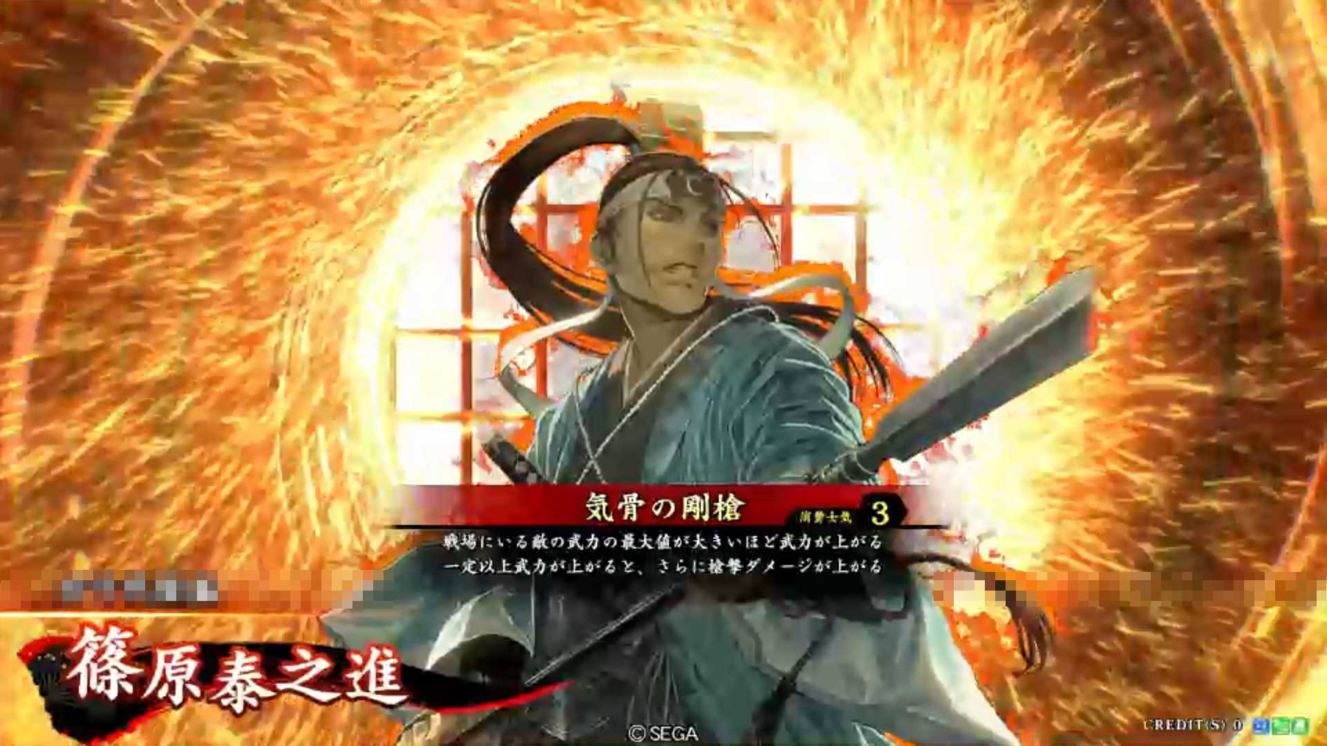 | 戦場にいる敵の武力の最大値が大きいほど武力が上がる。一定以上武力が上がると、さらに槍撃ダメージが上がる | ||||