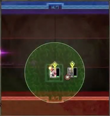 | 【陣形】(発動すると陣形が出現し、その中にいる間のみ効果が発生する。陣形は同時に複数発動できない) 味方の兵力が徐々に回復する。さらに旋回操作を行うと、対象の味方の武力が一定時間上がる。この操作は効果中に一度だけ使用できる | ||||