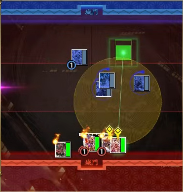 緋の味方の武力が上がり、接触している敵の武力を下げる