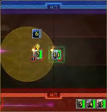 | 対象の味方部隊数に応じて効果が変わる 1部隊:武力と知力が上がり、武力によるダメージを軽減する 2部隊:武力と移動速度が上がる 3部隊以上:武力が上がり、兵力が徐々に回復する | ||||