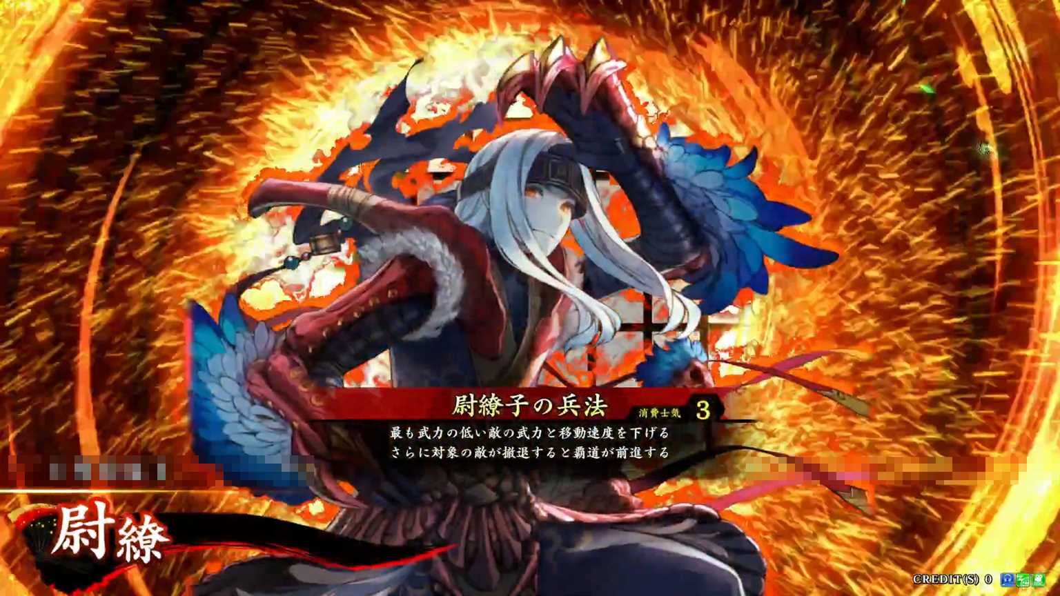 | 最も武力の低い敵の武力と移動速度を下げる。さらに対象の敵が撤退すると覇道が前進する | ||||