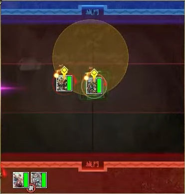 | 武力が上がる。ただし自身を除く範囲内の味方が撤退する。この効果は撤退した味方部隊数が多いほど大きい。一定以上武力が上がると、さらに移動速度が上がり、突撃を当てた敵の移動速度を一定時間下げる | ||||