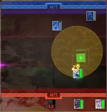 | 自身と、自身を除く最も武力の高い味方の武力が上がる。この効果は自身と対象の味方の距離が近いほど大きい。さらに自身の移動速度が上がる。ただし対象のいずれかの味方が撤退すると、対象の味方全てが撤退する | ||||