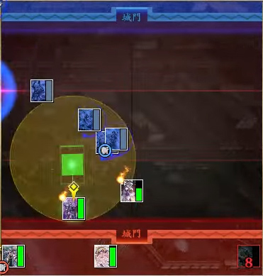 自身の武力と移動速度が上がる。さらに自身を除く最も武力が高い紫の味方の武力が上がる